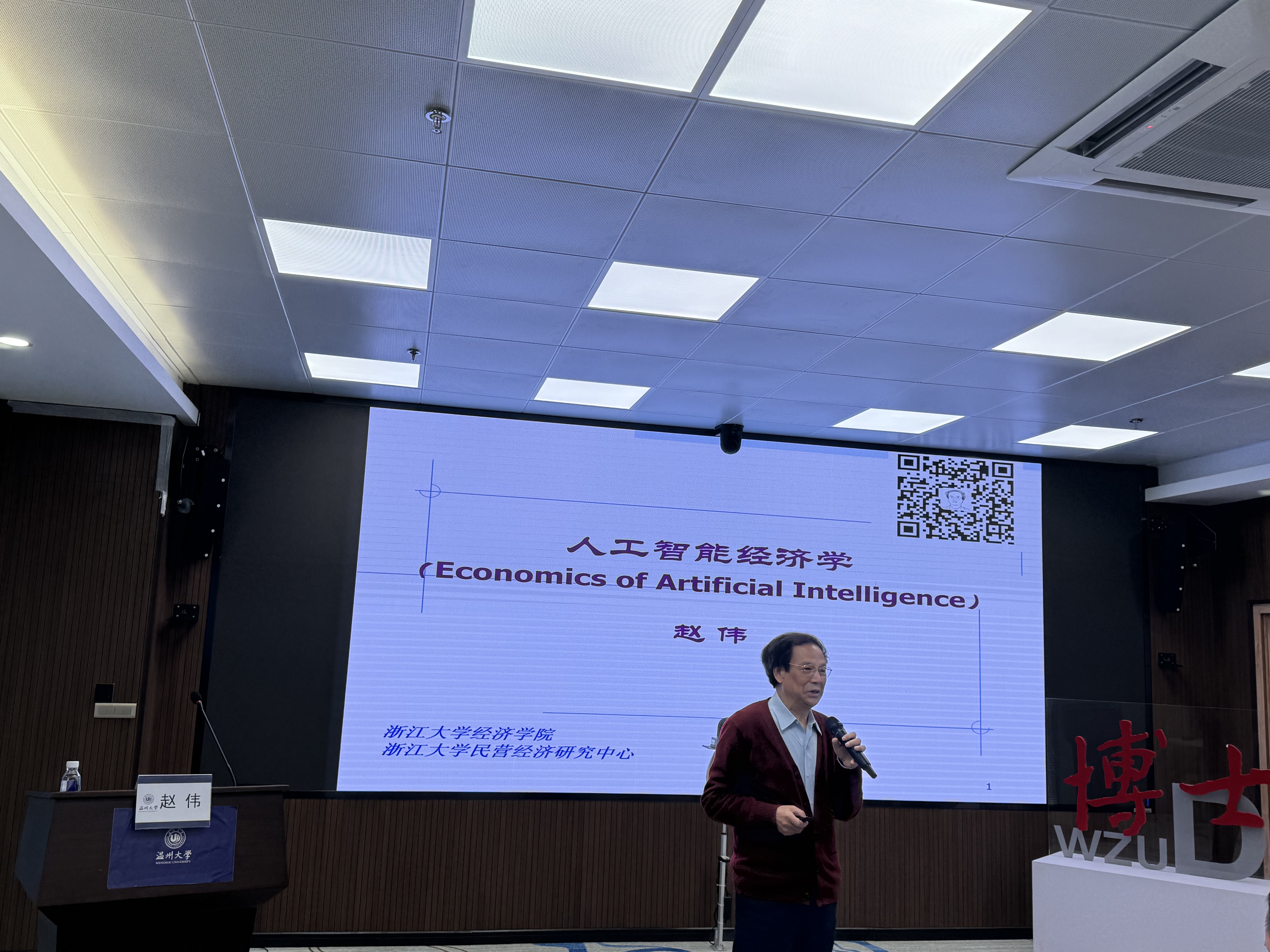 主办,温州大学人文社科处和浙江省温州人经济研究中心承办。浙江大学经济学院赵伟教授作《人工智能经济学》讲座,此次讲座由温州大学彩票平台