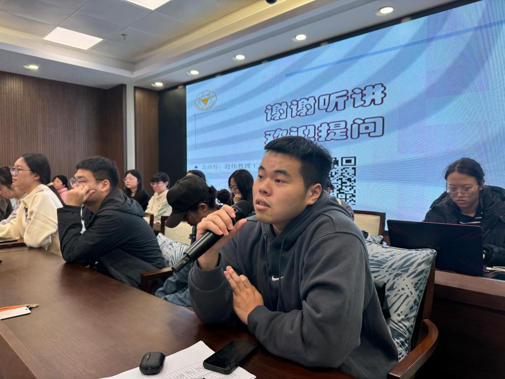 会上,与会教师和学生围绕相关领域的研究与赵伟教授进行深入交流,赵教授针对每个人的问题进行了全面详尽的解答,大家受益匪浅。