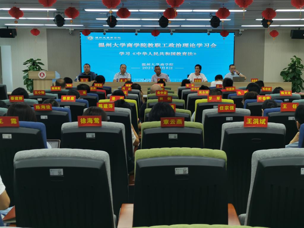 在仲辉商道讲堂组织学习新修订的《中华人民共和国教育法》,与党史学习教育相结合,做好新修订的教育法的学习宣传和贯彻实施工作,提高全体教职员工的政治站位和师风师德修养。学院全体教职工参加学习,学院党委书记郑彩莲领学。