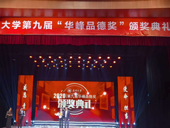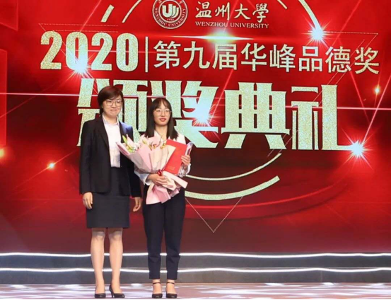 窗 11月4日下午,温州大学第九届“华峰品德奖”颁奖典礼在育英大礼堂举行,我院来新安老师、20届毕业生斯琳晓同学荣获本届“华峰品德奖”,学院共有40余名师生代表在主会场现场观摩了本次典礼,所有新生还在学院组织的各个分会场线上见证了这次盛典。