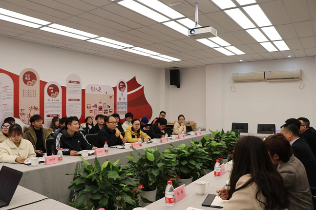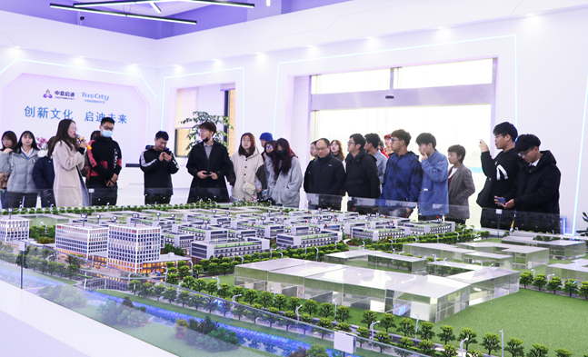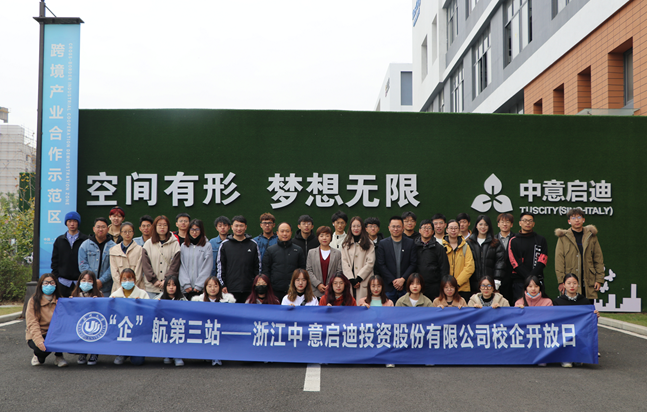 师生一行到访中意启迪科技城开展见习活动。浙江中意启迪投资股份有限公司总经理唐荣灿、副总经理赵娜、运营服务部总监张丽等陪同交流。