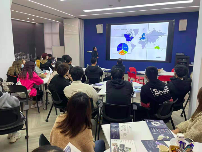 40位学生到访了宁波锦灏集团。总经理唐新高、人力资源总监楼钰涵陪同参观,双方对校企合作进行了深入探讨。