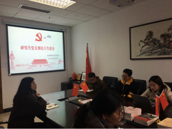 研究生党支部在A223召开2020年度民主生活会,本次会议紧密联系支部工作,联系支部成员个人思想、学习和工作实际,进行自我检查、党性分析,开展批评与自我批评,提出改进措施,明确努力方向。支部书记韩新华老师及全体党员同志出席会议,会议由支部书记助理梁城超同志主持,共三项议程。
