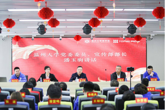 温州大学党委委员、宣传部部长潘玉驹致辞。他认为,此次直播人才培养基地暨思政直播间的推出,是“思政+业务”两轮驱动深度融合的产教融合、校企合作的创新之举,也是彩票平台