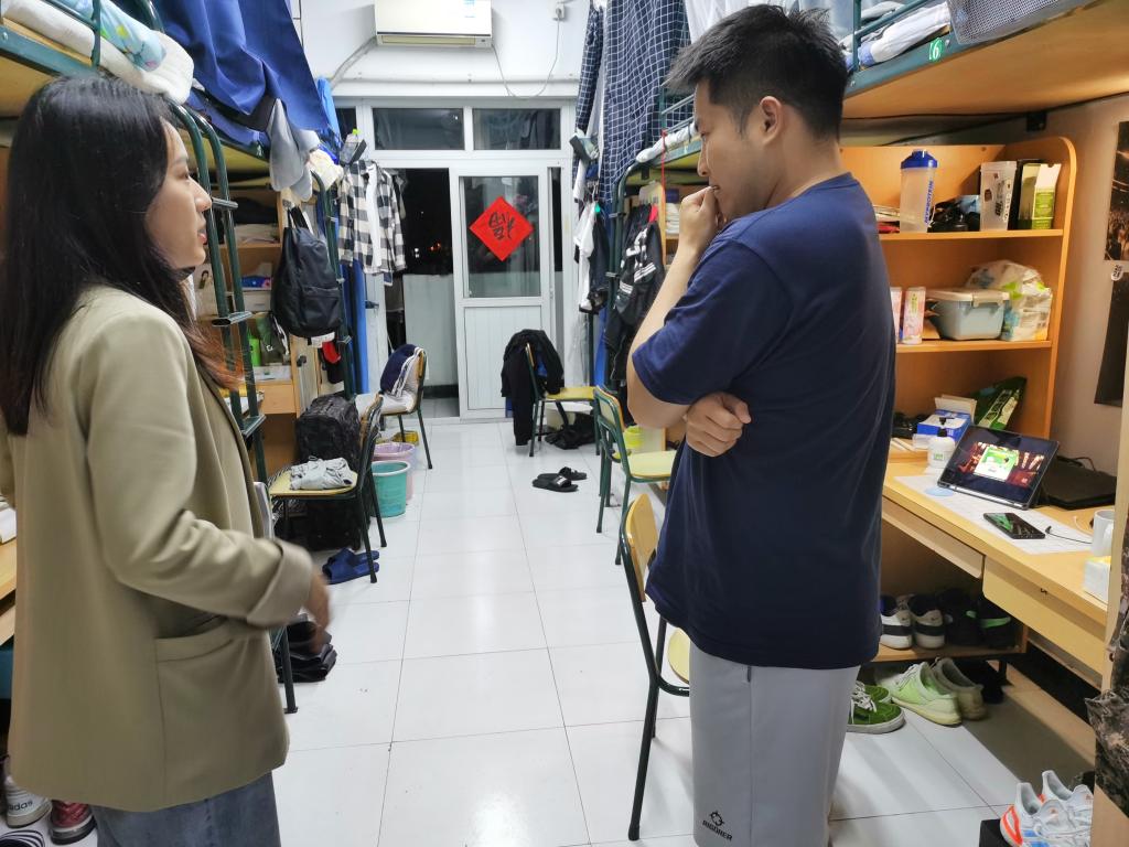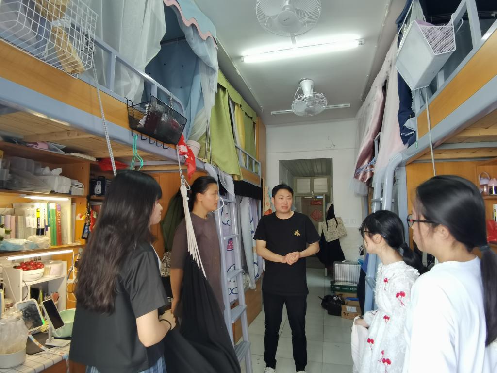 每到一处,辅导员老师对同学们的近期的学习、生活等方面都进行悉心关怀。针对最近同学们关心的疫苗接种和疫情防控问题进行一一解答的同时,还着重强调了寝室用电安全,饮食卫生安全问题,告诫同学们不要因为天气炎热在寝室使用蚊香等安全隐患较大的灭蚊工具,注意防暑及饮食安全减少点外卖的次数。