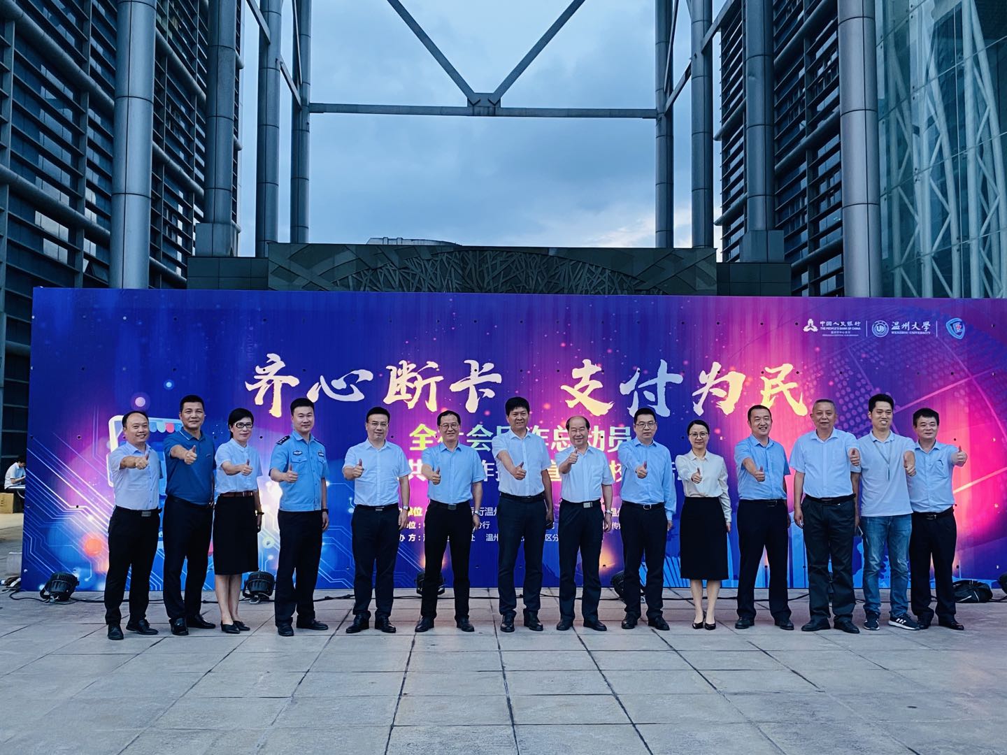 中国人民银行温州市中心支行党委书记、行长肖宗富,中国银行浙江省分行党委委员吴刚、中国人民银行温州市中心支行副行长陈明亮、温州市反诈中心副大队长黄通令、温州广播电视传媒集团副台长章迅挺、中国银行温州市分行副行长夏捷胜、中国银行温州市分行纪委书记王晓雨、温州大学党委副书记庄兴忠、温州大学保卫处处长孙安梭、温州大学彩票平台
