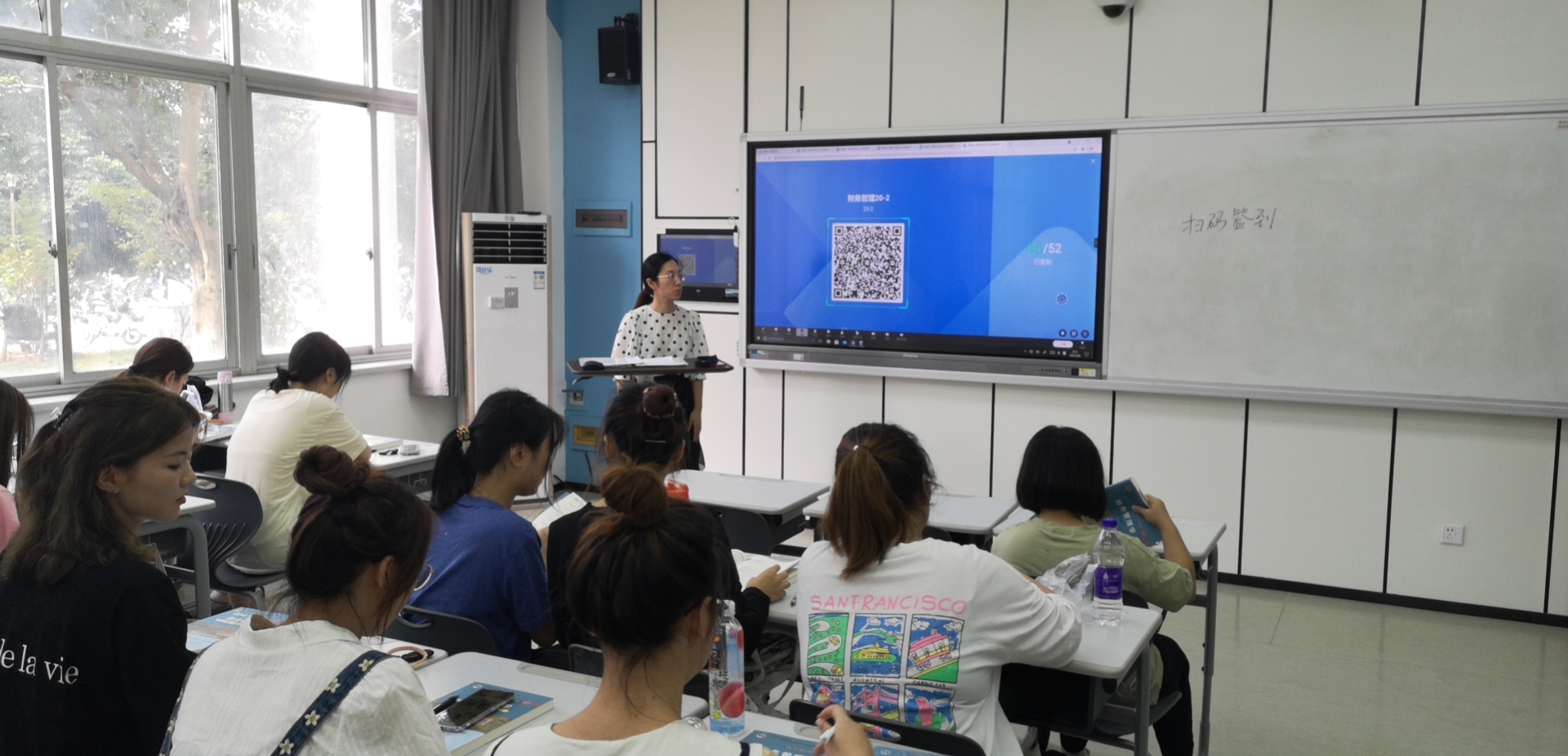 郑彩莲书记指出,金必简老师专业素养过硬,六大件准备齐全,课程思政意识强,智慧教室使用熟练。