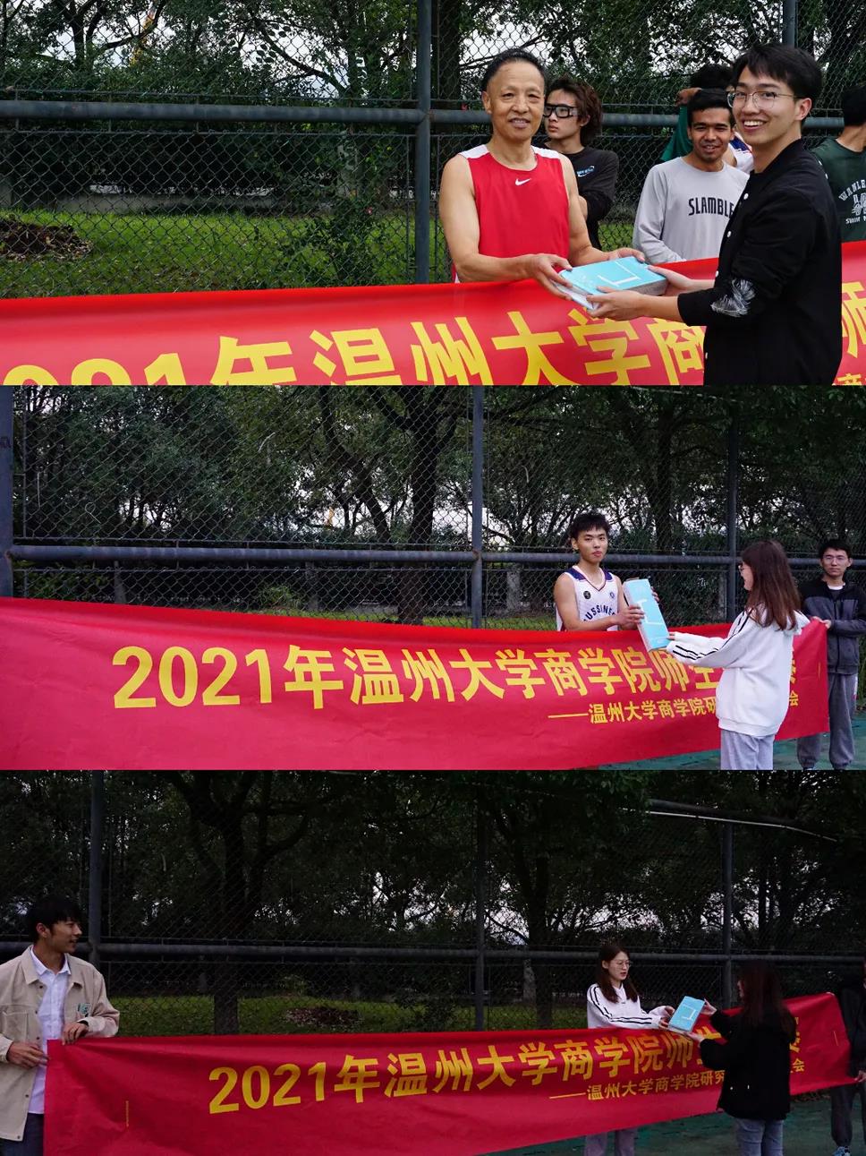 比赛结束后由研究生会主席陈宇航、研究生会宣传部吴慧芹、史影为获奖队员颁发奖品并合影留念,同学们和老师们在赛场上都展现出了自己独特的风貌,给予人积极向上的力量,此次师生篮球赛也在这里告一段落,让我们一起期待下一次比赛的来临。