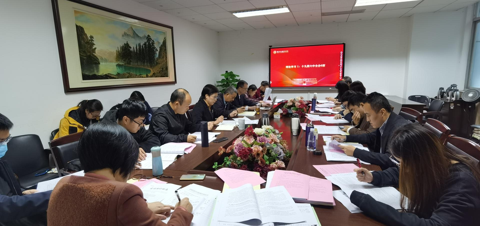 会上,唐华书记带领参会人员对十九届六中全会会议精神展开理论学习,解读了全会精神的要点,包括“两个确立”的重要意义、习近平新时代中国特色社会主义思想的地位、对《决议》的评价、 “十个坚持”和“全过程民主”的内涵、在高质量发展中推进共同富裕、创造经济快速发展奇迹的“秘诀”等多个方面。领学结束之后,唐华书记发表感想,“从十八届六中全会和十九届六中全会的内容对比中可以得出如下结论,‘我们党的建设每五年实现一个大的跨越,我们党对于治国理政的认识更加深入,党的建设也更加成熟’”。