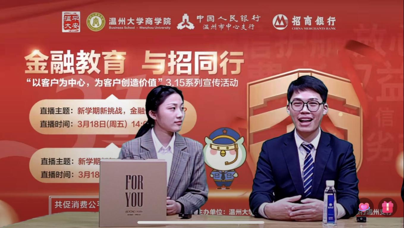 联合中国人民银行温州市中心支行、招商银行温州分行、温州大学保卫处举办系列活动,如温州大学第一届短剧本、微电影大赛,反诈防诈宣讲直播,后续还将持续推出反诈防诈、金融小知识进班级、进寝室、进中小学等活动。