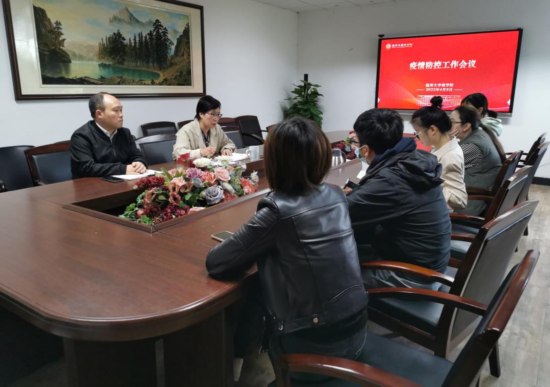 举行疫情防控工作会议,会议由学院党委书记郑彩莲主持,学院党委副书记唐华、办公室主任张素琴、教学科科长徐姝、学生科科长周洁文及相关工作人员参加会议。