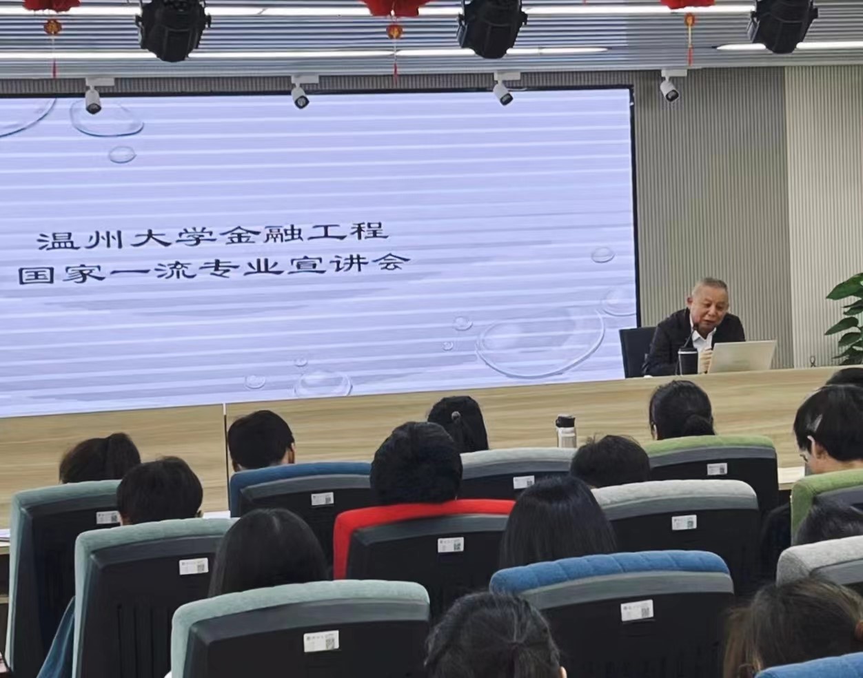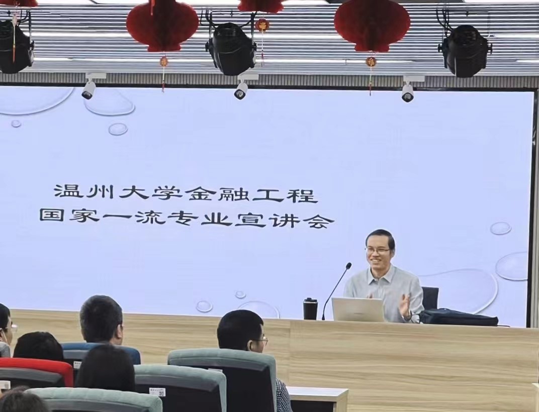 胡振华院长作为开场,为同学们讲述了金融工程专业的发展历史、各项优势以及光明前景。他亲切地向同学们介绍了温州的金融发展历程,并且向同学们细数了金融工程专业在温州的区域优势,并且简单介绍了金融工程专业的老师的教学能力以及科研能力强。殷切地希望同学们可以认真思考未来的发展方向,发现金融工程专业能够为同学们带去的宝贵知识和技能;同时,也期盼同学们能够携手共同推动金融工程专业欣欣向荣!