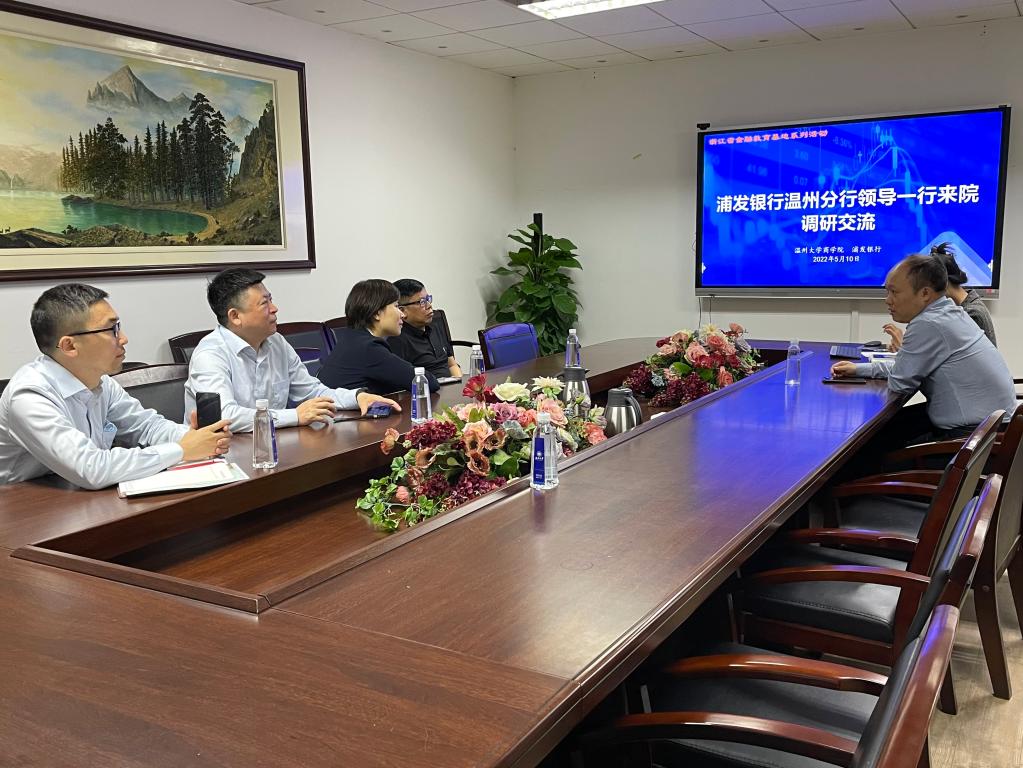 2022年5月10日下午,浦发银行温州分行办公室兼资金财务部经理方珏、温州理工学院经管分院蒲祖生老师等一行来我院调研交流。彩票平台