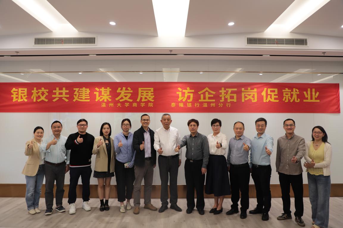 此次活动为我院与泰隆银行温州分行“银校共建”开创了良好的局面,为今后双方通过党建共建、实习基地、联合培养基地等形式进一步深化合作奠定了坚实的基础。