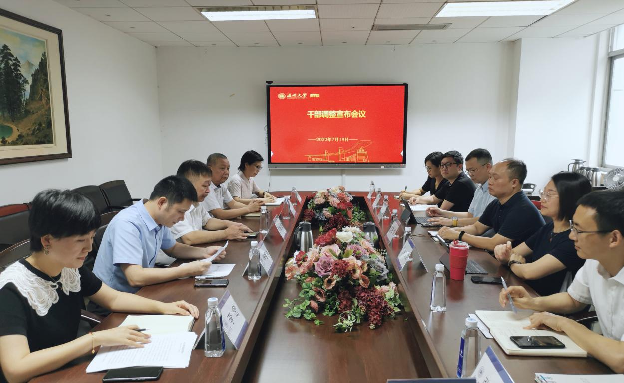 在信息楼A222会议室举行干部调整宣布会,温州大学校长赵敏出席会议并讲话,彩票平台