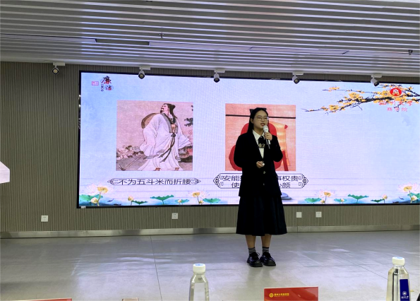 比赛中,各参赛选手都紧紧围绕“学勤廉典型·扬清风正气”这一主题展开精彩的演讲。22金融工程1班郭丽丽同学列举“余元君奉公正己”“方志敏清正廉洁”“周恩来勤政为民”“李大钊勤俭一生”四个例子告诉同学们要向勤廉典型学习,坚守节操,警惕诱惑。22工商专升本班隋渝吉同学以“扬清风正气·树廉洁标杆”为题,从陶渊明到李白再到周敦颐展示了古人的廉洁傲骨,呼吁大学生应养成廉洁正气,争做时代好青年。22金融工程2班周志雄同学以自己对“勤廉”开场,并引名人事例,展勤廉之风。22工商管理班刘芷君同学用朱彦夫、黄旭华等人的事例阐述 “水以清为贵,人以廉为尊”的道理,也提升了在场观众对清廉的认识。最令人印象深刻的选手是20国贸班陈月雅同学,她引冯梦龙和黄志丽之例,讲述勤廉典范,并紧跟时事,引用习近平总书记在党的二十大报告中的最新讲话“坚决打赢反腐败斗争持久战攻坚战”,做到了人物事例与理论阐述的完美结合,生动形象地阐述勤廉的意义和反腐斗争的重要性。每一位选手都以勤廉的典型事例呼吁大学生要在日常学习生活中要养成勤廉的好习惯,营造勤劳廉洁的风气。