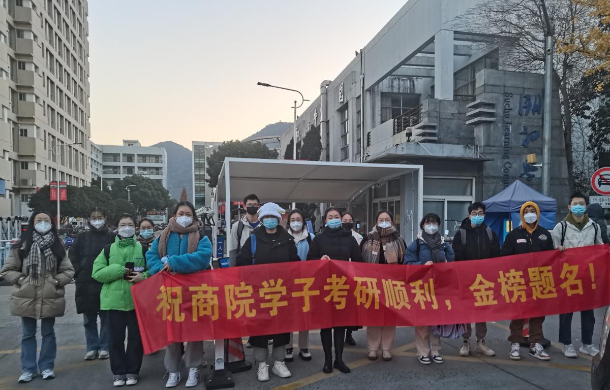 学工办辅导员胡施施早早地来到现场,代表商院全体师生为考研学子加油助力,让考研学子在寒冷的天气中感受到暖暖温情。