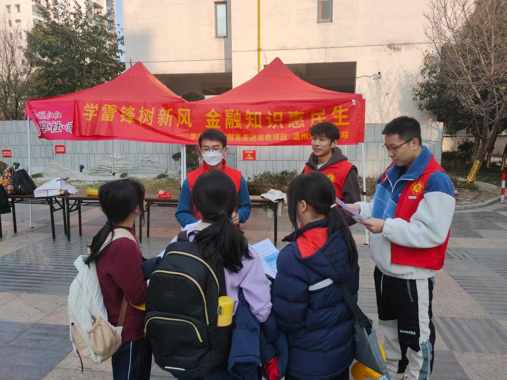 与温州医科大学临床医学院的学生党员们赴博园社区、茶山村等地开展“金融防诈骗,爱心送健康”主题志愿服务活动,为社区居民普及金融知识,提供医疗健康服务。