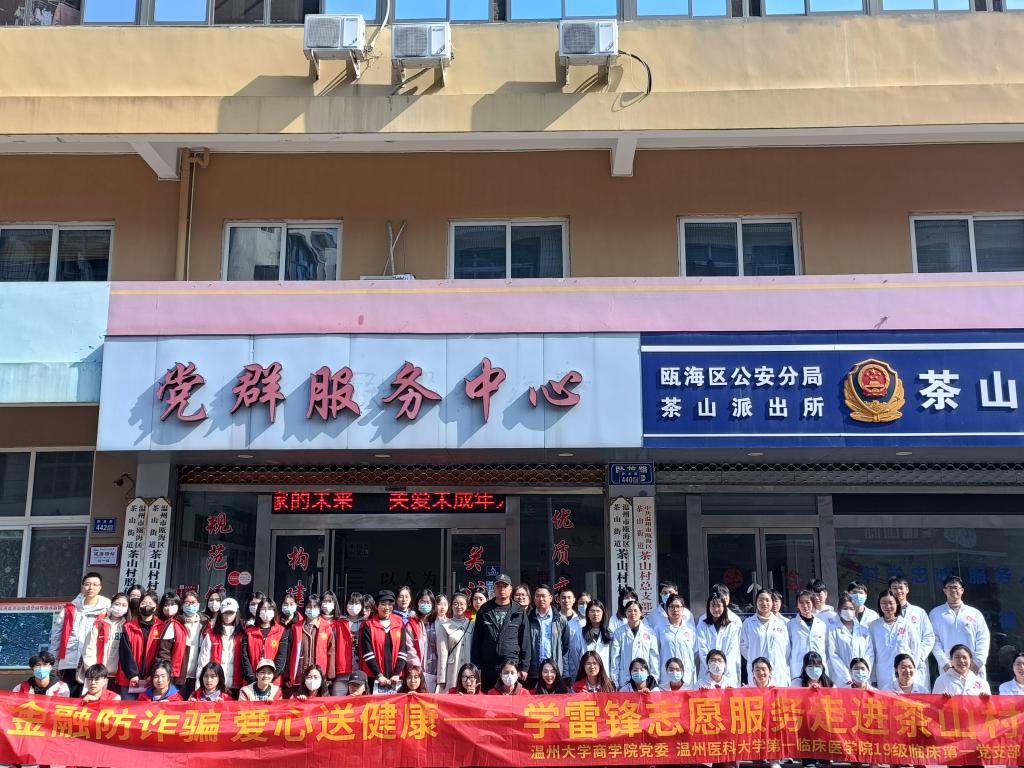 据悉,本次活动共约100名党员志愿者参加,共服务两地居民2000余人次,在普及金融防诈知识的同时为人民提供了医疗健康服务,受到了两地居民的一致好评。茶山村负责人徐亮表示,“温大和温医大的学子为茶山村居民测量血压、普及反诈防骗知识非常好,深受居民喜爱,希望后续能够到茶山村开展更多的志愿活动,服务茶山居民”。温州医科大学第一临床医学院19级临床第一党支部书记夏禹也表示,“我们的党员同志们用实际行动践行着雷锋精神,用所学专业知识服务于人民,相信这能够让他们切实感受到所学知识的价值,同时,我也希望他们能够继续用行动践行和传承雷锋精神”。