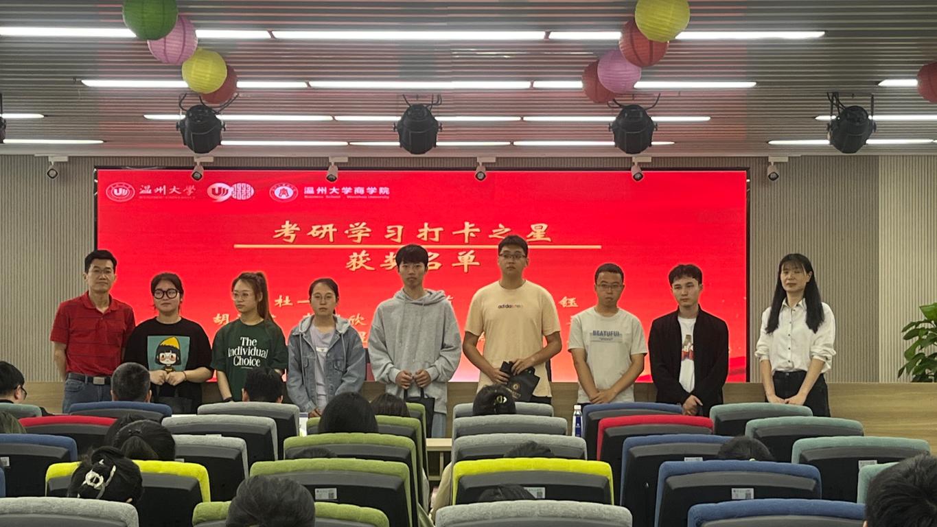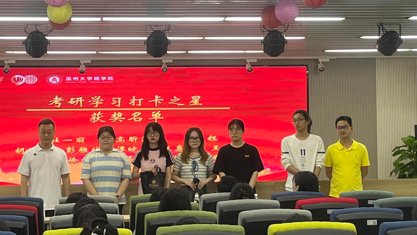 良好的行为习惯是决定一个学生未来成功的基础和保障。各系主任为13位荣获“考研学习打卡之星”称号的同学颁发奖品。这些同学是在今年3月为期一个月的考研打卡活动连续打满31天,展现了他们对备战考研的坚定信念。