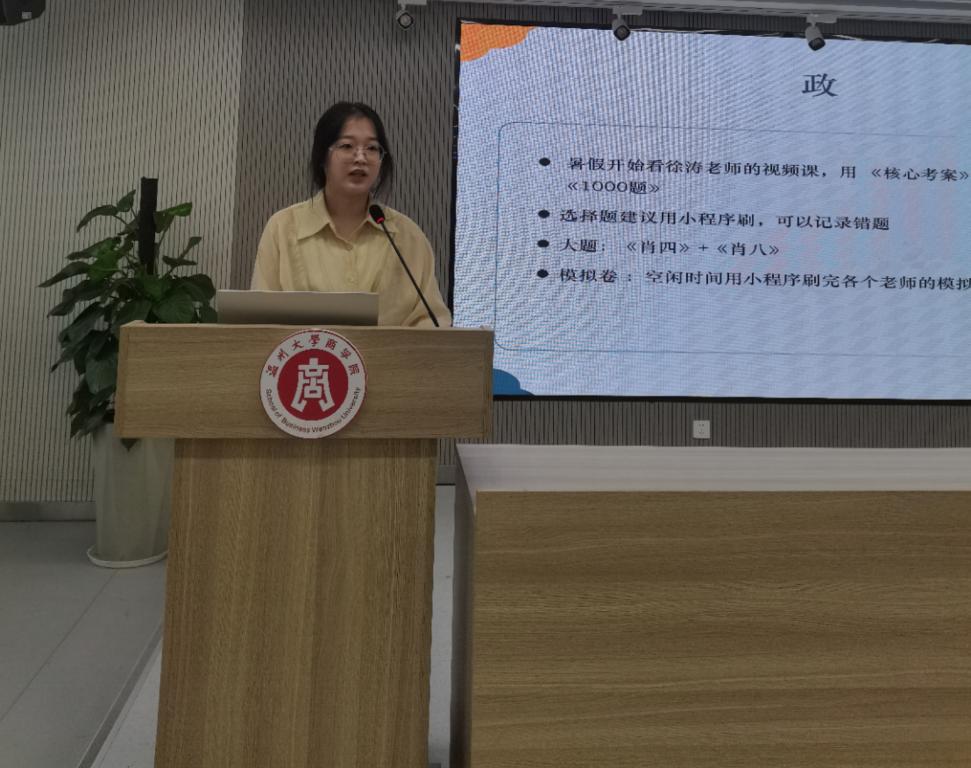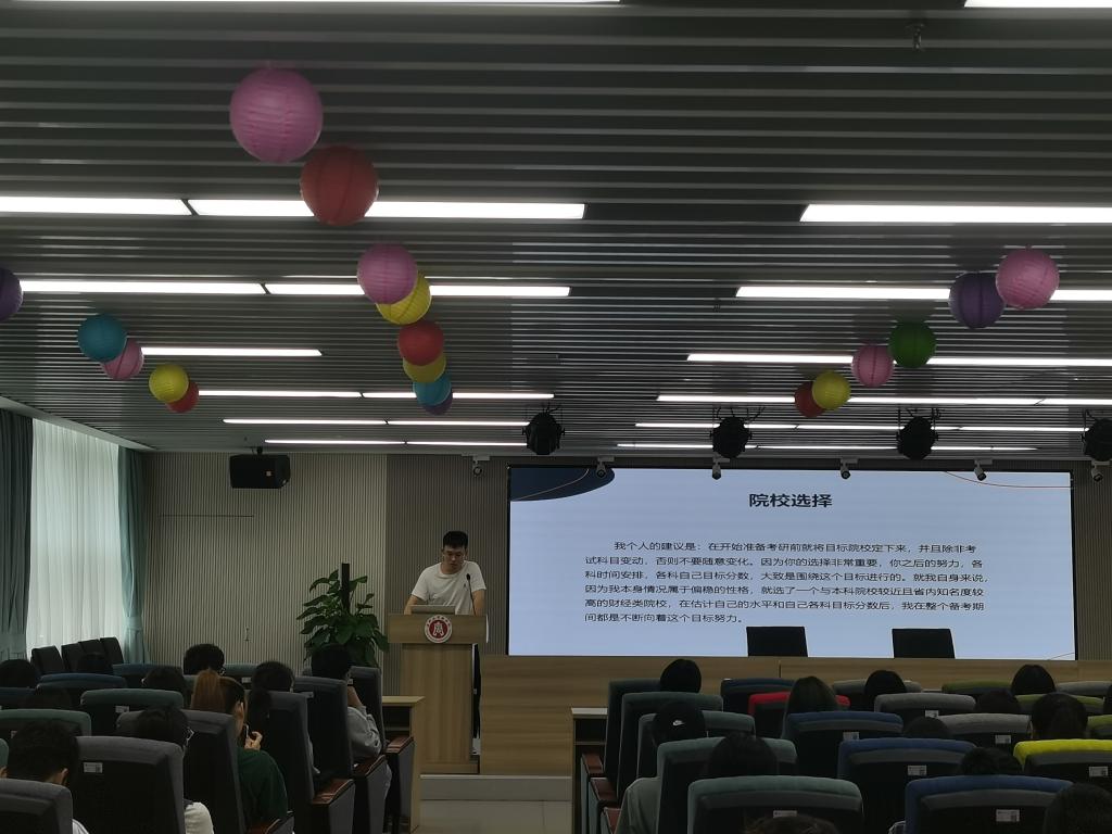 颁奖仪式后,23届成功上岸研究生的5位优秀学子丁国峰、黄磊、雷娇娇、沈彬格、蔡瀚慷先后上台分享自己的考研经验,为学弟学妹们倾囊相授自己的成功上岸经验。事虽难,做则必成;路虽远,行则将至。他们共同祝愿学弟学妹们也能考取自己理想的院校。