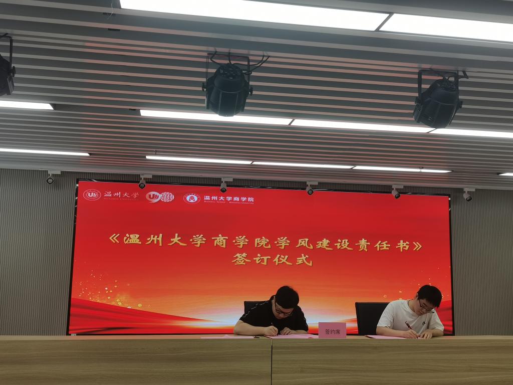 学风建设责任书》,并与代表班级签订学风建设承诺书,这一张承诺书是一份沉甸甸的责任与义务,代表这商院师生对于建设优良学风的信心与决心。
