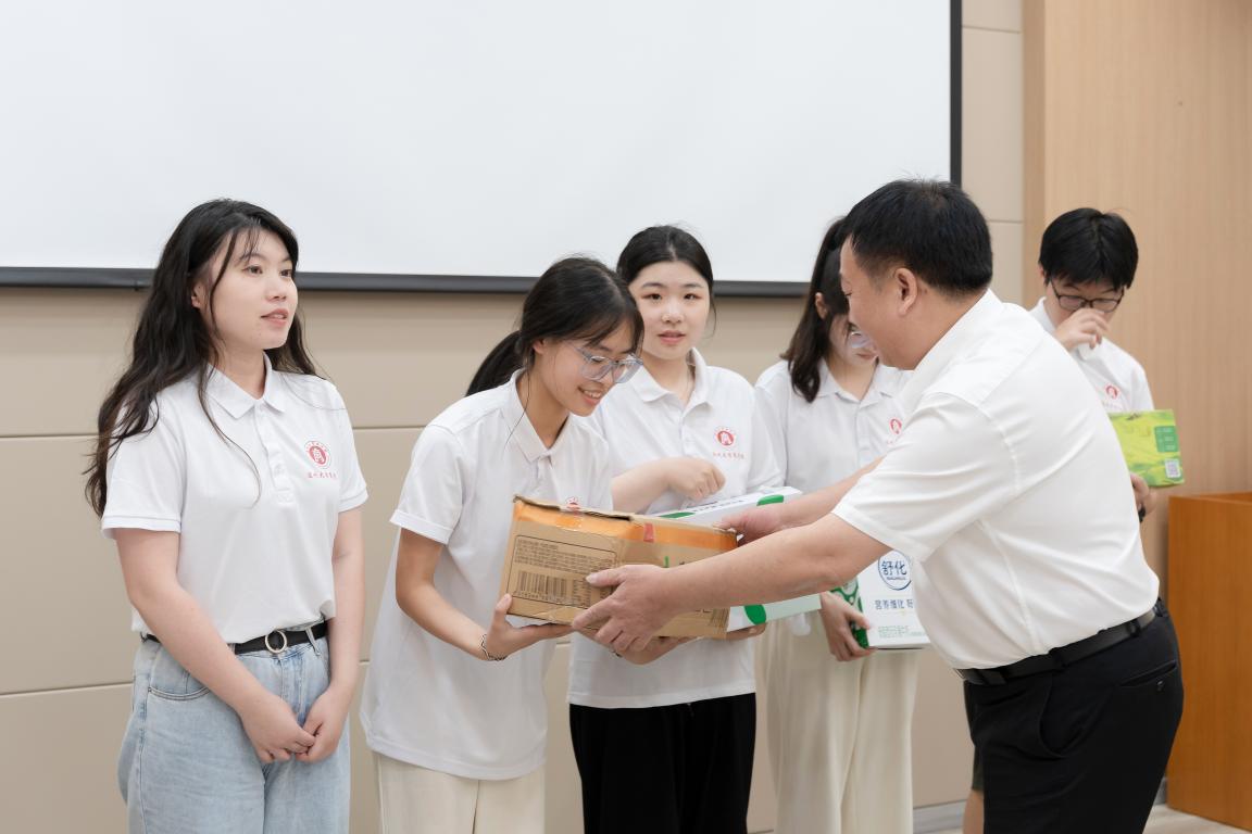 最后,赵敏校长与校团委书记易招娣一同为暑期社会实践队员送上慰问品。