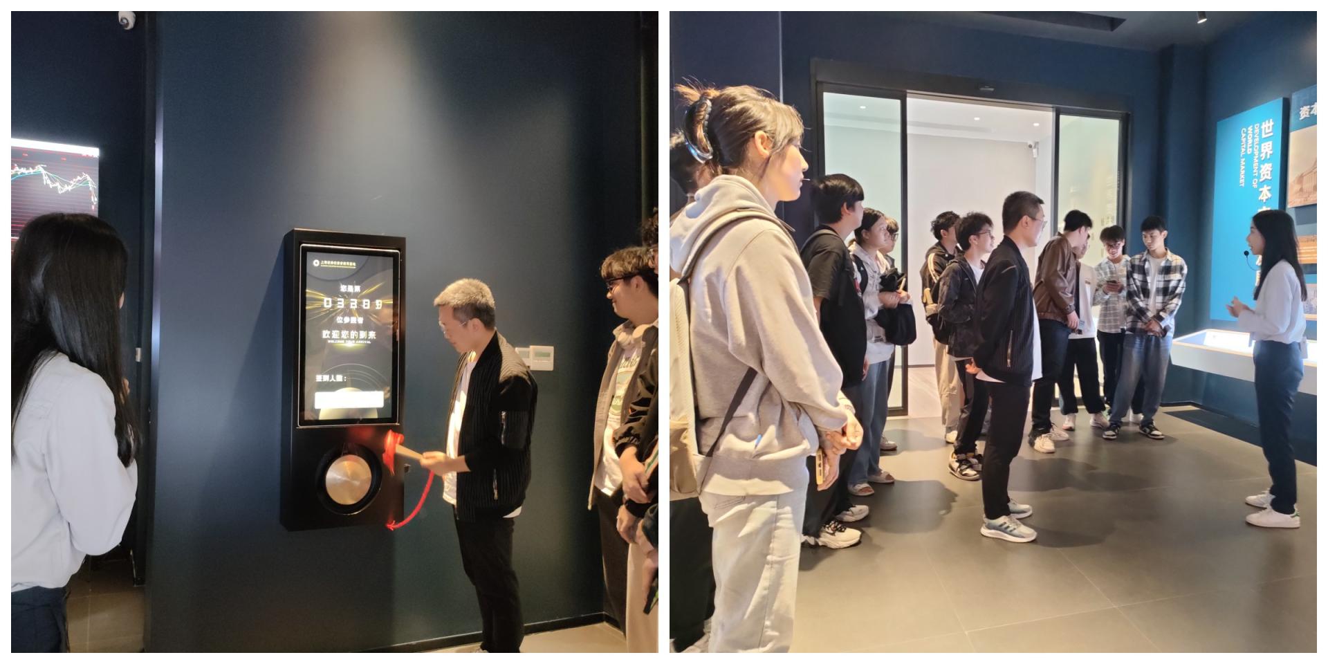 活动伊始,在投教专员的带领下,同学们依次参观了投教基地的世界资本市场发展、中国证券发展、资本市场在温州、温州民企上市历程、模拟交易区、证券知识普及和风险提示、上海证券品宣等功能区域,了解了证券行业的历史沿革以及业务操作、资本市场和风险教育等方面的相关知识。