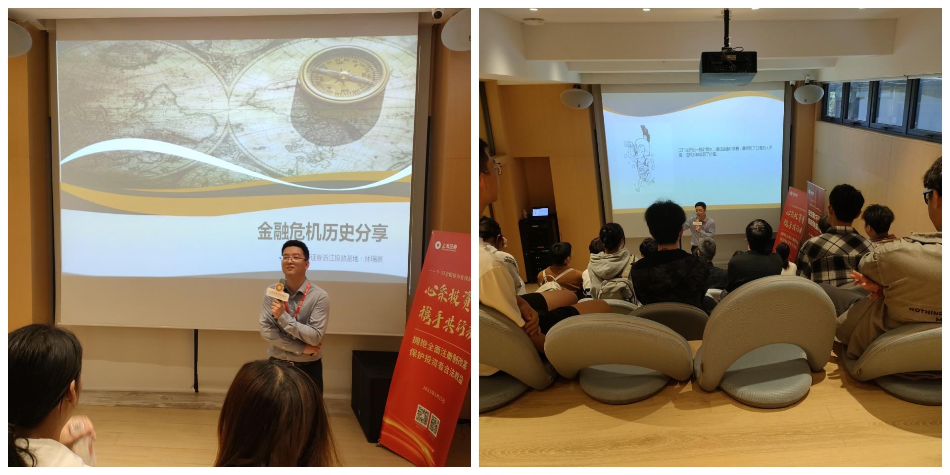 参观结束后,上海证券投资者教育基地负责专员林瑞赢老师为同学们分享了课程《历史上金融危机》。林老师讲述了历史上著名的金融危机——郁金香泡沫的由来,声情并茂的讲课搭配上幽默有趣的动漫,让同学们对金融行业的风险与机遇有了更加具象的感受。