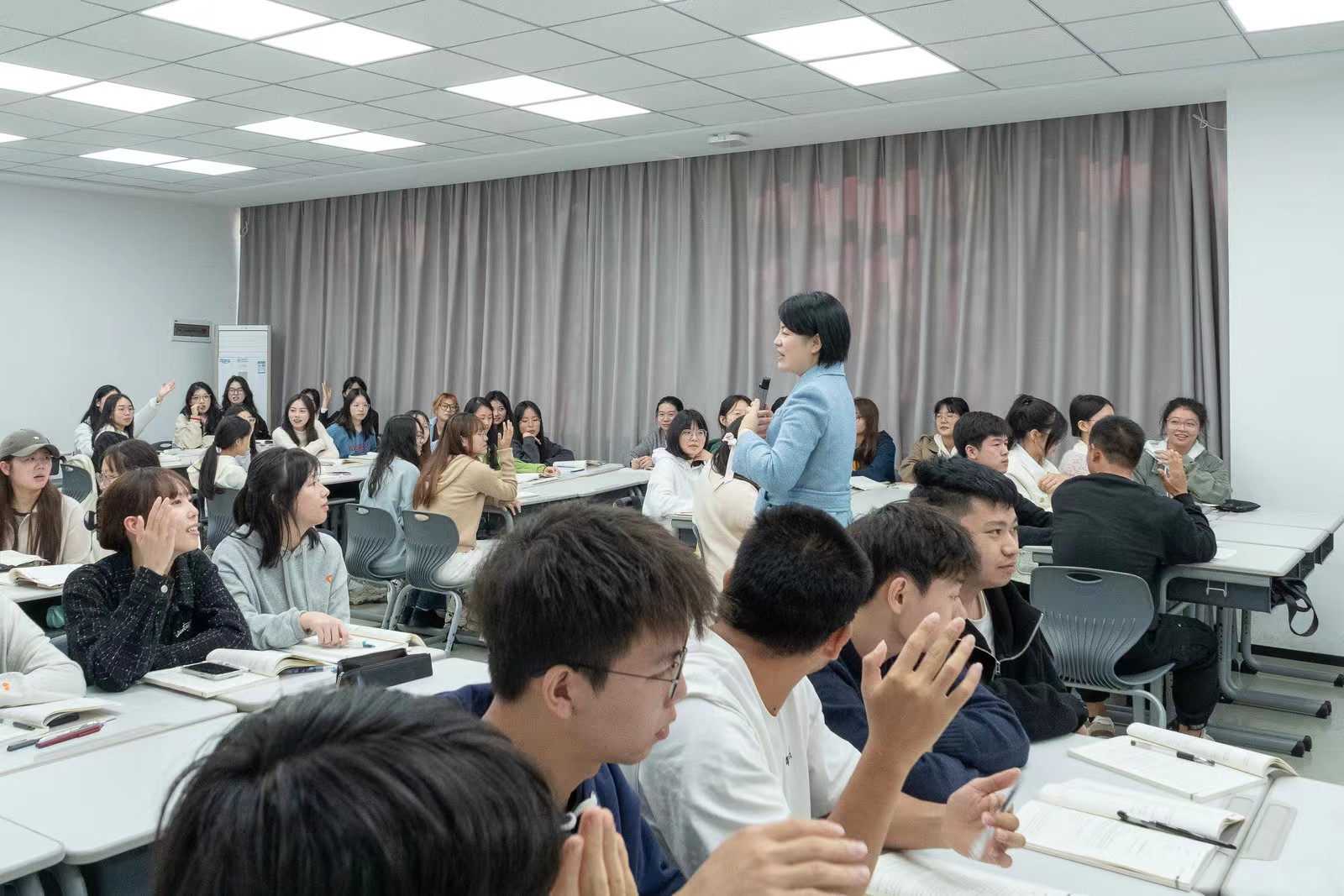 国贸系马媛副教授在北校区2-107教室开设了一堂面向全校的“明心”课程思政教学示范课。彩票平台