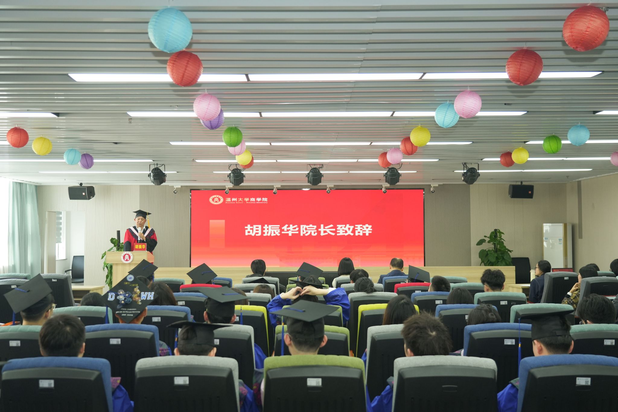 院长胡振华、党委书记李密、副院长余向前、副书记唐华、副院长陈文芝等学院领导、教师代表、研究生辅导员以及全体21级金融专业硕士毕业生参加毕业典礼,典礼由学院副院长余向前主持。