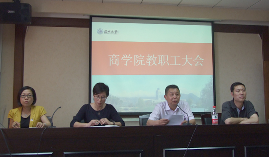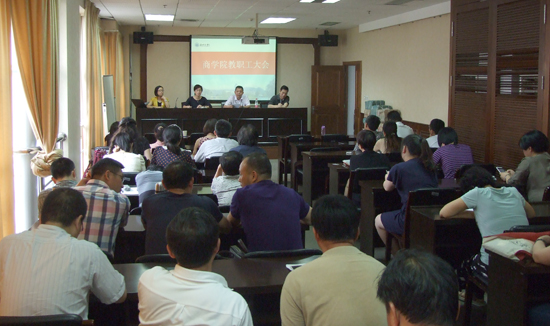 召开全院教职工大会。校党委委员、组织部长方益权,学院全体领导、教职工出席会议,胡振华院长主持会议。校党委委员、组织部长方益权代表学校党委宣读了学校关于彩票平台
