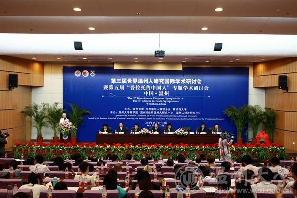 、浙江省社科重点研究基地温州人经济研究中心、温州市世界温州人研究中心承办的第三届世界温州人研究国际学术研讨会暨第五届“普拉托的中国人”专题学术研讨会开幕式在温州大学育英图书馆报告厅举行。温州市委副书记王昌荣,浙江省社科联副主席何一峰,温州市委常委、统战部部长陈作荣,澳大利亚莫纳西大学副校长斯坦夫尼,温州市世界温州人研究中心理事长陈艾华,校领导陈福生、蔡袁强、赵敏、陈安金以及我院师生代表等参加开幕式。