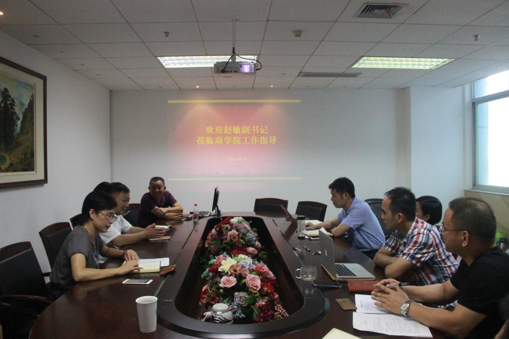 9月17日上午,新学期开学第一天,校党委副书记赵敏教授一行来彩票平台 调研“挑战杯”准备情况,校团委屠霁霞书记陪同一起调研。学院党政领导班子、办公室、学生科相关人员参加了会议。