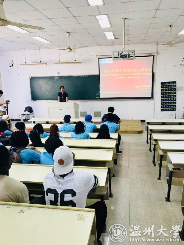 ,从此开始研究经济与生活,感知温州,感知中国新里程,我要向你们表示最热烈的祝贺!”。“希望你们尽快适应温州的环境,了解温州大学,学习知识,练习技能,增长才干,结交朋友,注意安全,遵守纪律,学习创新创业的本领,成长为最好的自己。同时,要做一名中外友谊的传播者!祝福大家在温州大学学有所成,身体健康,心情愉快!”