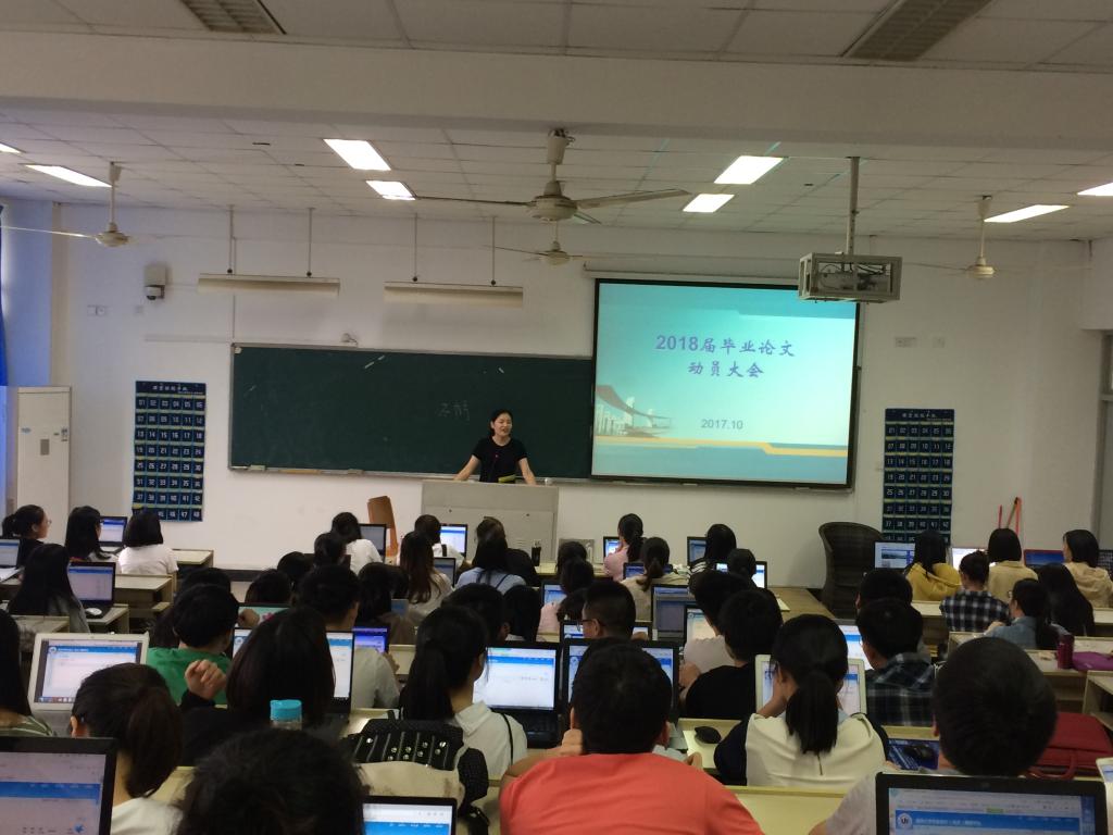 国贸系2018届毕业论文动员大会在北3-401教室顺利召开。本次动员大会由国贸系马媛老师主持,14国贸本和16国贸专升本班级的学生参加了本次大会。