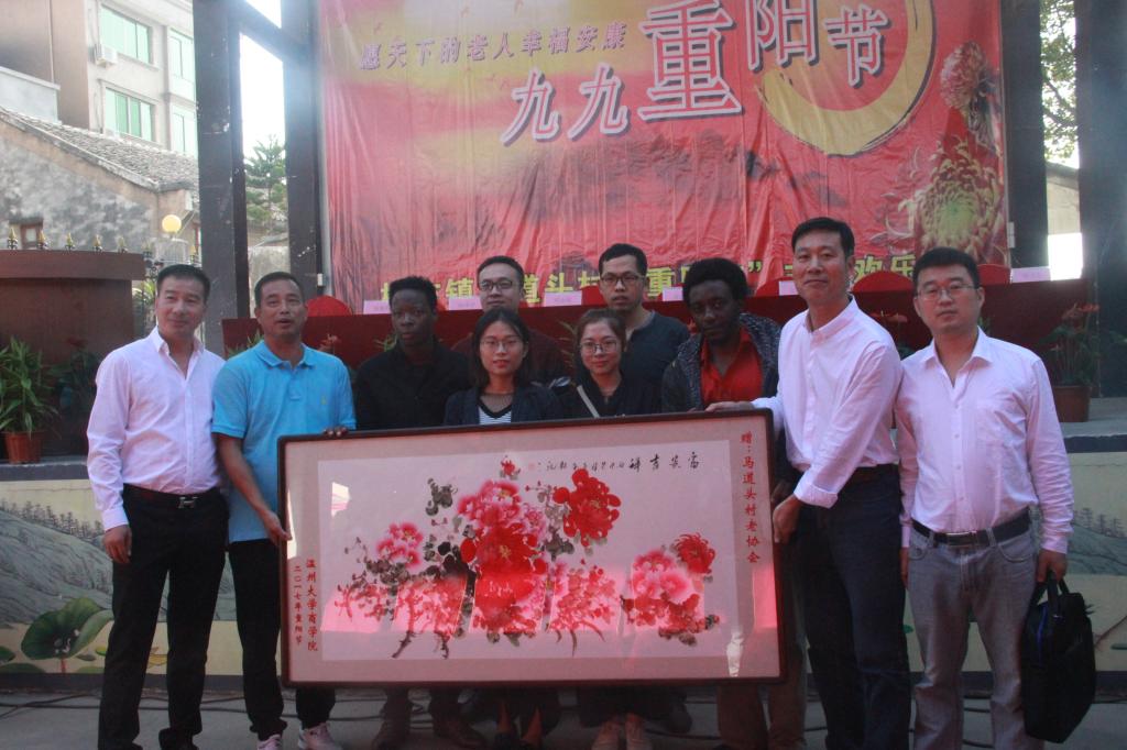 不忘初心,牢记使命。为深入贯彻落实党的十九大报告精神,将理论知识融入实践。10月28日,我院党总支副书记刘开练、学生科科长白延虎、辅导员老师林大可带领我院部分学生干部与研究生代表来到乐清柳市镇马道头村,开展重阳节新青年下乡活动。参与本次新青年下乡活动的学生干部中还包括两位来自我院国际部的留学生同学,他们同我们一起慰问老人,庆祝中国的传统节日重阳节。