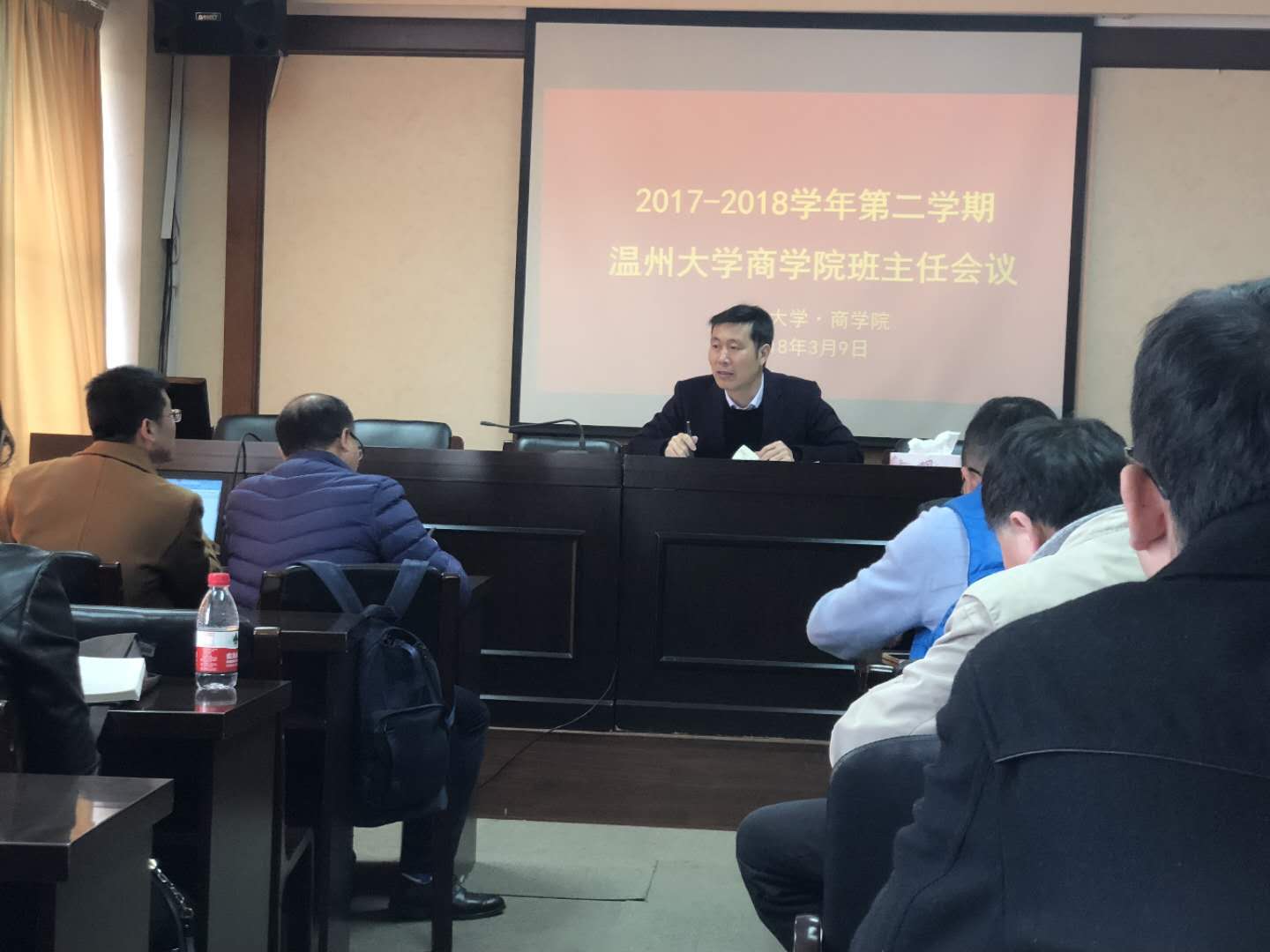 刘开练副书记传达了3月9日学校有关安全、稳定工作会议的精神,要求学院辅导员和班主任要立足讲政治,明大局的高度,要严格遵守党的各项纪律,引导学生正确,全面理解十九届三中全会精神;班主任要深入了解并掌握学生春节期间、开学初学生的思想、学习、生活等各方面情况,积极配合学校开展开学初学生思想动态调查,及时发现学生存在的思想和认识问题,反馈学生反映强烈的意见和建议;新学期要营造浓郁的学习氛围,进一步加强学风建设,落实“课堂拒绝手机”制度,鼓励班级同学积极参加融商学科竞赛。毕业班班主任要重点关注毕业生返校和校外住宿情况, 准确掌握未及时返校的毕业生的去向和动态,并做好在外实习安全教育工作,适时慰问在外实习的毕业班学生。要加强意识形态重点关口的把握,把牢源头,决不给错误思想言论提供传播途径;每位班主任要严守法律、政治和道德底线,同时密切关注学生思想动态,认真做好开学初的各项安全防范工作。