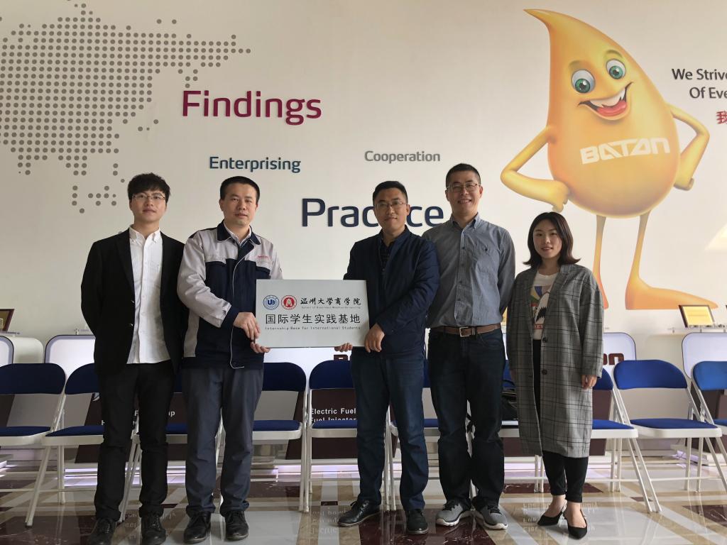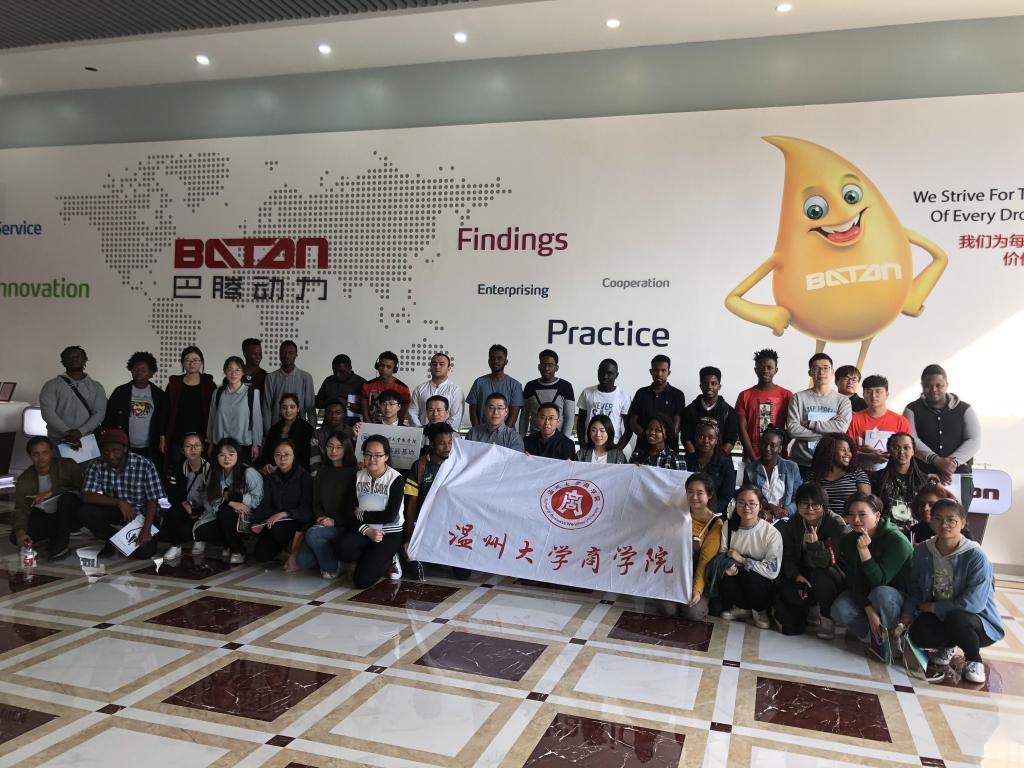 国际部主任王洪斌和国际部阮骐、刘颖共三位老师,带领2016级工商管理本科国际化班和留学生班一行共40余人赴位于温州市平阳县万全镇宋桥工业区的温州巴腾电子科技有限公司,代表温州大学彩票平台