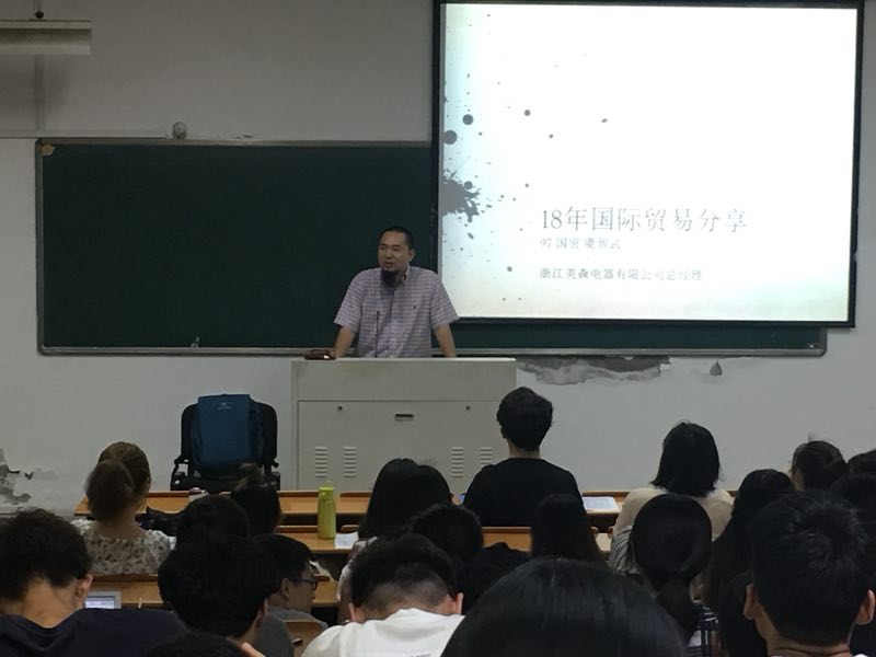 5月21日,温州美森电器有限公司总经理虞智武先生在温州大学北校区2号楼401教室,为国贸系学生开展了与专业学习密切相关的关于外贸展会方面的讲座。