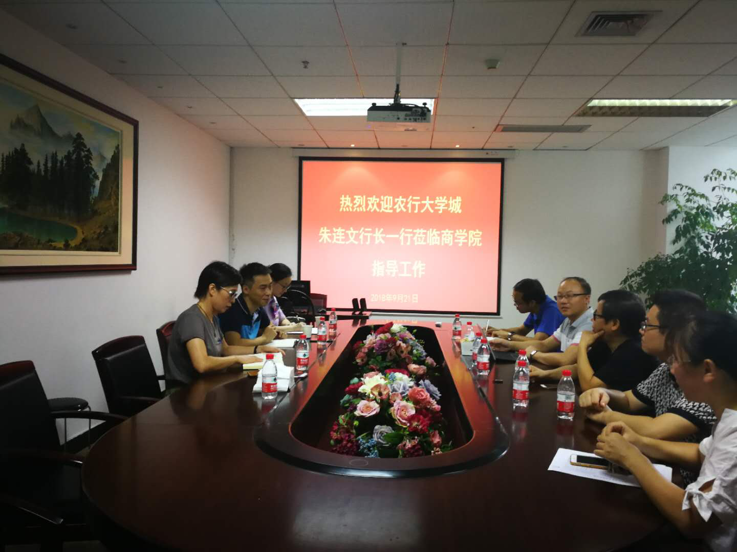 教工第一支部和大学城农行支部在A222深入探讨党支部实践基地建设工作,此项活动是为了更好地推进2018年温州大学“党支部建设年”的书记项目“走向大学城农行,请进温大金融系”。