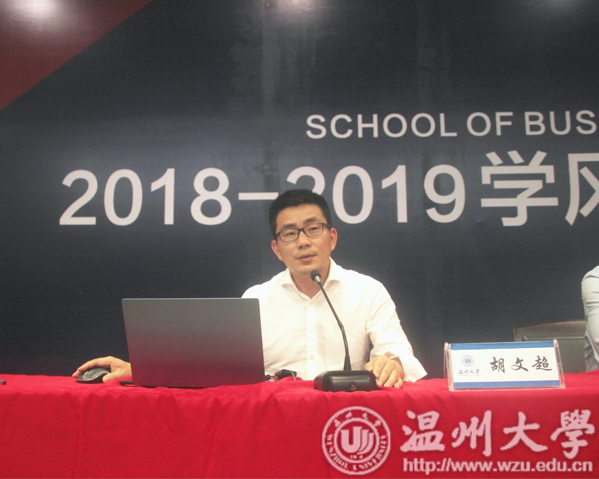 胡文超副院长先从温大的创业教育概况、创业教育政策支持、“互联网+”大学生创新创业大赛三个方面介绍了我校的创业教育情况。温州大学的创业教育被誉为中国高校创业教育“四大模式”之一,与清华,人大,黑大齐名。温大从2000年开创创新创业教育,开地方高校之先河,各个学院均有各自的创业空间,以分布式架构,聚合式共享,协同式发展为宗旨。在这样的平台支撑下,涌现出了一大批大学生创新创业的典型,如张良玉、傅智建、胡雪林等。温州大学有明确的创业支持文件和奖励政策,规定了详细的项目入驻程序,提供项目孵化补贴,奖励课外创业学分,还设立了创业大赛奖励,为学生创业提供了全方位的帮助。“互联网+”大学生创新创业大赛是一个展示梦想的机会,一个比拼努力的平台,胡院长鼓励同学们积极参赛,希望学生们可以通过参赛,获得能力提升、积累人脉、增长见识和物质回报。胡文超副院长也详细介绍了如何参加创新创业大赛,为在座的学生们提供了方向。
