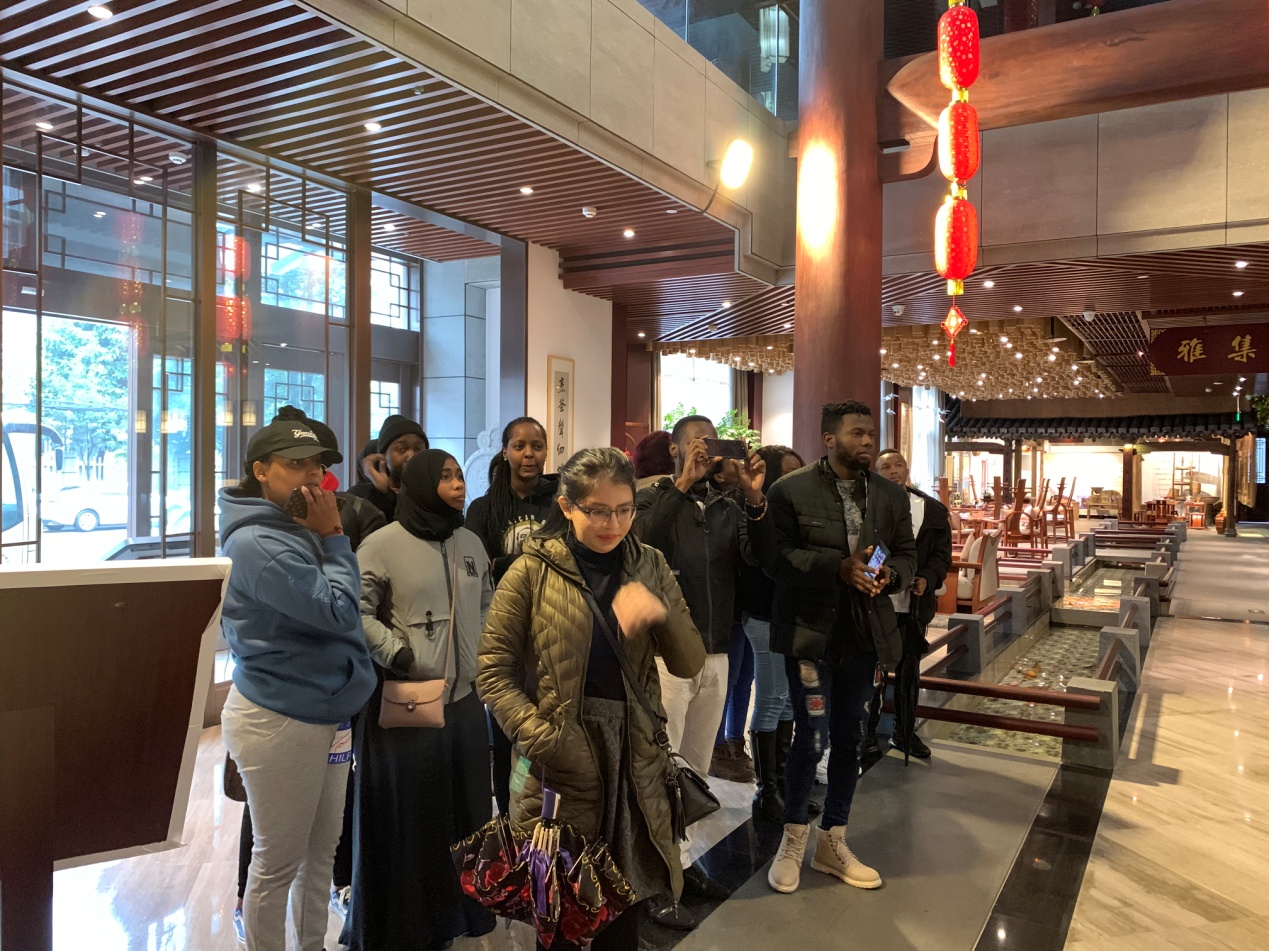 作为本次参观实践的场所,子久茶博苑在2017年4月被评为浙江十大文化茶馆,是目前温州地区档次最高、面积最大的茶文化经营场所。留学生们现场观看了宣传片,了解到制茶的繁复工艺,并在抑扬顿挫的音乐中欣赏了国家级茶艺师李丽君女士的茶艺表演,行云流水般的表演技艺让留学生们啧啧称奇,意犹未尽。