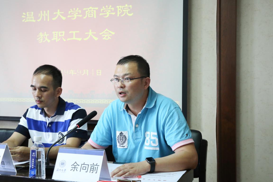 余向前副院长就教学工作作了七个方面的工作部署:第一,新学期听课与研讨方面关注本科教育,以本为本,四个回归;第二,制度化建设方面,强化学院政策文件的网络化建设,力争做到网上办公的便捷服务;第三,新开课程在政策上的支持;第四,做好转专业学生的思想稳固与精准分析;第五,做好年度教学考评工作;第六,教学成绩评定办法要加强宣传;第七,注意课堂纪律管理。