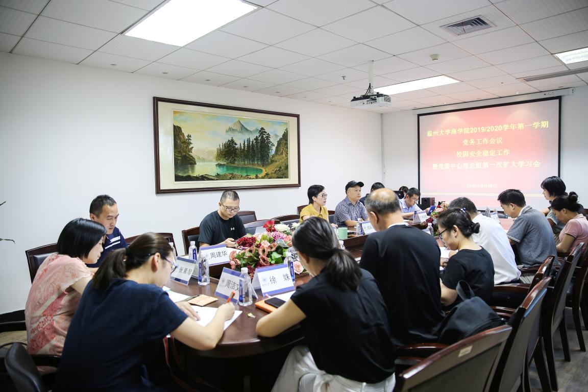 2019年9月19日,我院召开本学期第一次党务工作会议,院党委书记郑彩莲,党委副书记、院长胡振华,党委副书记唐华,各党委委员、支部书记及学院科室负责人等参加会议。会议由郑彩莲书记主持。