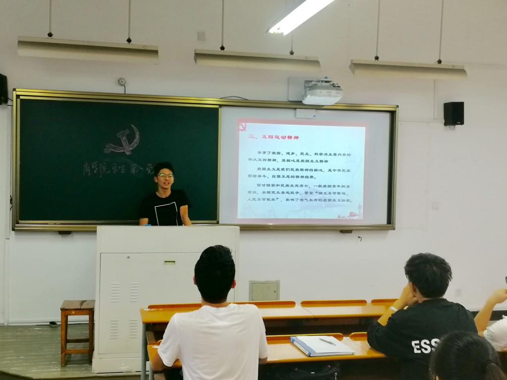 今年恰逢“五四运动”一百周年,会议重温学习了习总书记在“纪念五四运动100周年大会上的讲话”,通过学习,深入了解了五四运动爆发的时代和社会历史条件、五四运动所发扬传承的以爱国、进步、民主、科学为主要内容的五四精神,也感受到了习总书记对青年殷切的期许,激励了我支部青年勇于担当责任,敢为人先,争做一个合格、精气神蓬勃向上的学生党支部。