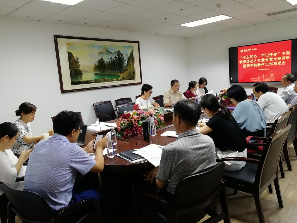 召开“不忘初心,牢记使命”主题教育之专业设置专题调研暨开学初教学工作布置会,学院党委书记郑彩莲、教学副院长余向前、各专业负责人和系主任,教学科相关老师参加了此次会议,会议由余向前副院长主持。