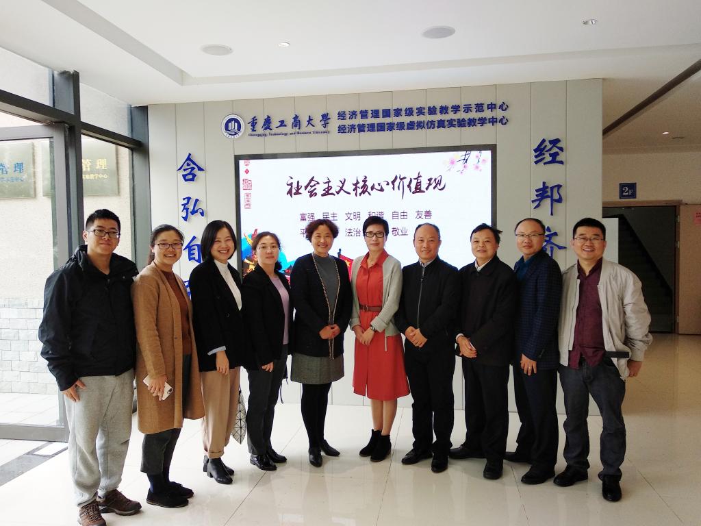 为进一步巩固“不忘初心、牢记使命”主题教育成效,根据学院党委安排部署,聚焦“守初心、担使命、找差距、抓落实”总要求,确保主题教育高起点开局、高标准开展、高质量推进,11月12日,学院党委书记郑彩莲会同党委副书记唐华,党委委员、教工第一党支部书记周建华,国际生专业负责人王露,实训中心实验员白延虎,辅导员黄汉一行六人赴重庆工商大学经济学院走访调研。