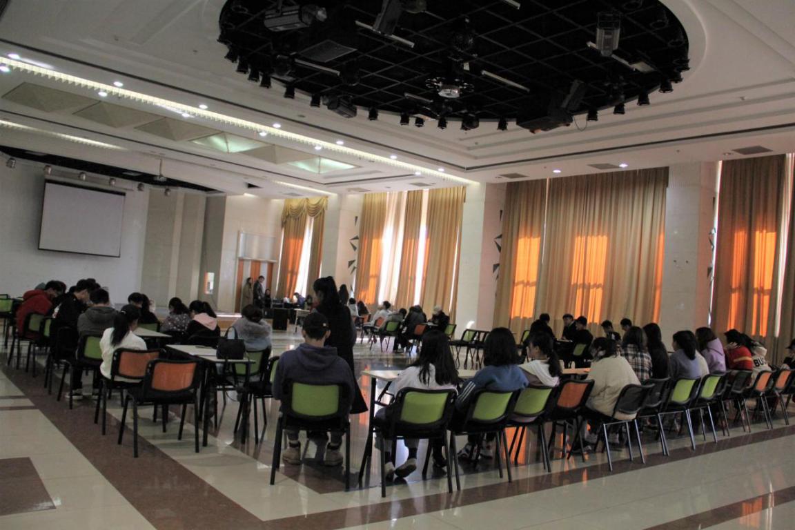党建办公室两位学姐齐聚大学生活动中心A座301,参加本次廉洁知识竞赛。