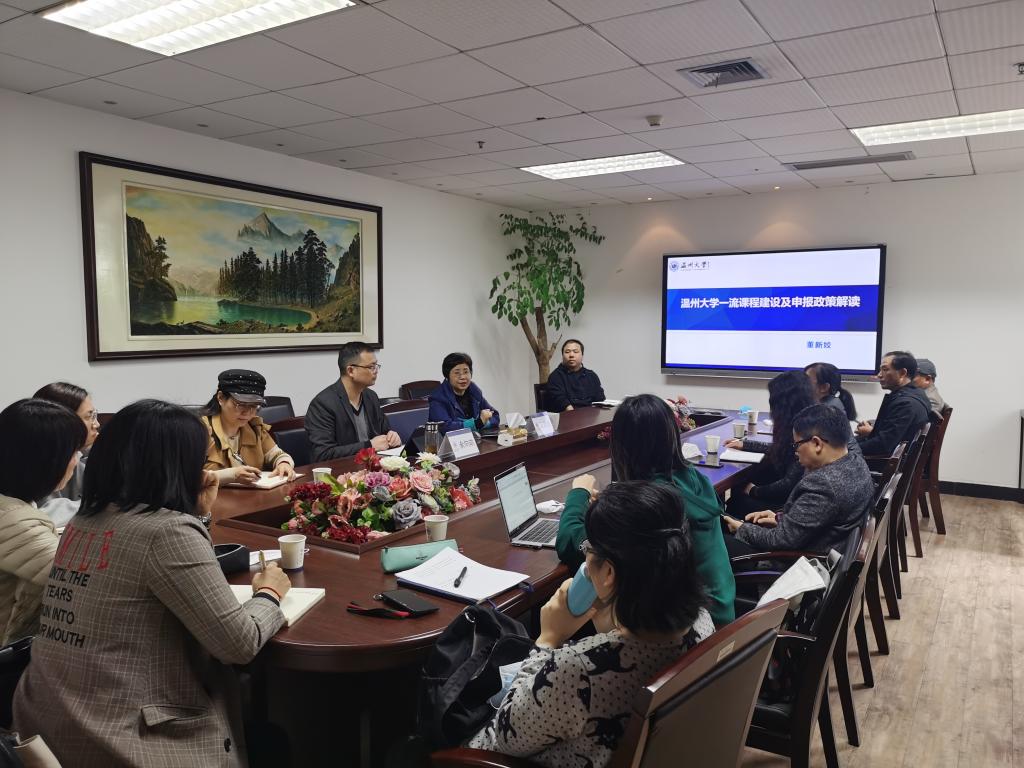 3月26日下午,教务处副处长董新姣老师来我院开展了一场“温州大学一流课程建设及申报政策解读会”,会议由教学副院长余向前老师主持,学院近20位有意向申报教师代表参加了会议。